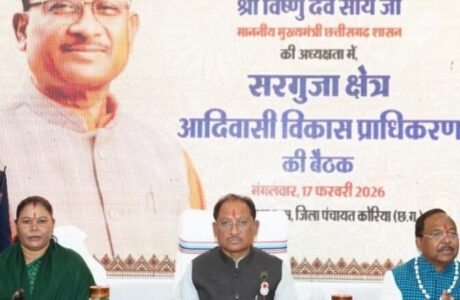रायपुर 17 फरवरी 2026/ मुख्यमंत्री विष्णु देव साय की अध्यक्षता में आज कोरिया जिले के बैकुंठपुर में आयोजित सरगुजा क्षेत्र