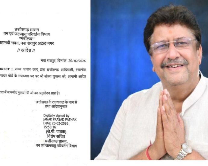 - ब्रेकिंग : अंजय शुक्ला बनाए गए औषधि पादप बोर्ड के उपाध्यक्ष, राज्य सरकार ने जारी किया आदेश…