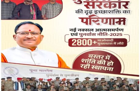 - नक्सल आत्मसमर्पण एवं पुनर्वास नीति से 2800 से अधिक लोग मुख्यधारा में लौटे: CM साय