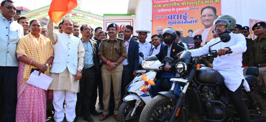 मुख्यमंत्री श्री विष्णुदेव साय ने हेलमेट जागरूकता रैली और अंजोर रथ को बगिया निवास से किया रवाना