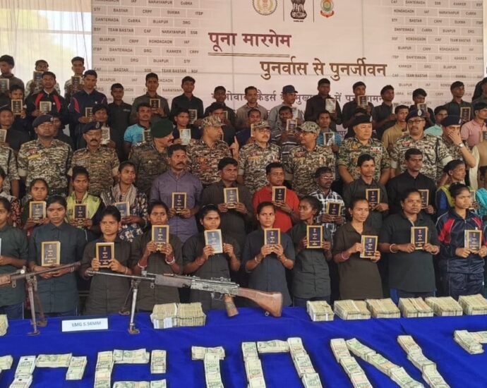 जगदलपुर में ₹3.29 करोड़ के इनामी 108 सशस्त्र माओवादियों ने किया आत्मसमर्पण, 44 महिला कैडर भी शामिल रायपुर 11 मार्च 2026/ मुख्यमंत्री विष्णु देव साय ने बस्तर क्षेत्र में माओवादी हिंसा के खिलाफ चल रही मुहिम को एक बड़ी सफलता बताते हुए कहा है कि अब बस्तर में बंदूक नहीं, बल्किContinue Reading