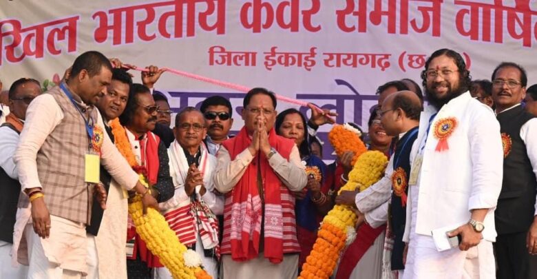 रायपुर – मुख्यमंत्री विष्णुदेव साय आज रायगढ़ के बोईरदादर में आयोजित अखिल भारतीय कंवर समाज के वार्षिक सम्मेलन में मुख्य अतिथि के रूप में शामिल हुए। मुख्यमंत्री साय ने समाज की मांग पर 30 लाख रुपए की लागत से निर्मित सामुदायिक भवन के प्रथम तल का लोकार्पण किया। समाज के वरिष्ठजनों ने मुख्यमंत्री का पारंपरिक रीति-रिवाजों के साथ भव्य स्वागत एवं अभिनंदन किया। मुख्यमंत्री साय ने कंवर समाज के पुरोधाओं को नमन करते हुए कहा कि समाज का विकास शिक्षा से ही संभव है। उन्होंने कहा कि शिक्षा केवल नौकरी ही नहीं, बल्कि विभिन क्षेत्रों में सफल बनने का माध्यम भी है। हर बेटा-बेटी को शिक्षित करना ही समाज को मजबूती देगा। उन्होंने कहा कि छत्तीसगढ़ सरकार आदिवासी समाज के उत्थान और कल्याण के लिए प्रतिबद्ध है। आदिवासियों एवं क्षेत्रों के विकास के लिए सरकार द्वारा विभिन्न योजनाएं संचालित की जा रही है जिसका लाभ लोगों को मिल रहा है। उन्होंने शासन की जनकल्याणकारी योजनाओं का अधिक से अधिक लाभ उठाने का आव्हान भी किया।