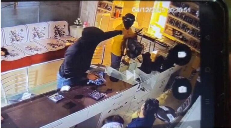 रायपुर. छत्तीसगढ़ के सुकमा जिले में एक ज्वेलरी शॉप में लाखों रुपए की लूट की वारदात सामने आई है। दो नकाबपोश लुटेरों ने दुकान के अंदर घुसकर व्यापारी को पिस्टल दिखाई और सोने-चांदी के आभूषण लूट लिए। पूरी घटना दुकान में लगे सीसीटीवी कैमरे में कैद हो गई। मामला सिटी कोतवाली थाना क्षेत्र का है।वीडियो फुटेज में दिख रहा है कि एक लुटेरा व्यापारी पर पिस्टल ताने हुए है, जबकि दूसरा बैग में ज्वेलरी भर रहा है। उसी दौरान दुकान के सोफे पर एक बच्ची भी लेटी हुई थी, जिसे कोई नुकसान नहीं पहुंचाया गया। घटना के कुछ घंटों के भीतर ही पुलिस ने दोनों आरोपियों को गिरफ्तार कर लिया है।जानकारी के अनुसार, वारदात दुर्गा ज्वेलरी शॉप में गुरुवार रात करीब साढ़े 8 बजे हुई। दोनों नकाबपोश युवक दुकान में घुसे और व्यापारी पर बंदूक तानकर उसे डराया। इसी बीच एक आरोपी ने काउंटर में रखे आभूषण बैग में भर लिए और दोनों दुकान से भागने लगे।