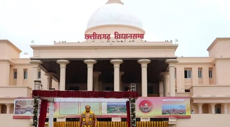 रायपुर। कांग्रेस विधायकों के पोस्टर प्रदर्शन को लेकर शीतकालीन सत्र के चौथे सदन की शुरुआत में ही जमकर हंगामा हुआ। इस वजह से सदन की कार्यवाही 8 मिनट के बाद ही 5 मिनट के लिए स्थगित करनी पड़ी। सदन में दोनों पक्षों ने एक दूसरे के खिलाफ गांधी परिवार और अडाणी के दलालों चाटुकारों हाय हाय के नारे लगाए।