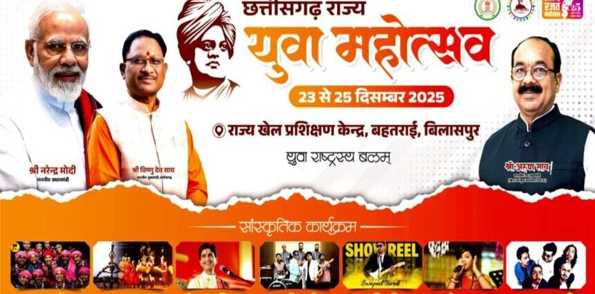 रायपुर- राज्य शासन के खेल एवं युवा कल्याण विभाग द्वारा 23 दिसम्बर से 25 दिसम्बर तक बिलासपुर के राज्य खेल प्रशिक्षण केंद्र बहतराई में राज्य युवा महोत्सव का आयोजन किया जा रहा है। मुख्यमंत्री विष्णु देव साय 23 दिसम्बर को इसका शुभारंभ करेंगे। महोत्सव में 14 सांस्कृतिक और साहित्यिक विधाओं में प्रदेश के 3000 युवा अपनी प्रतिभा दिखाएंगे। शुभारंभ समारोह में छत्तीसगढ़ की मेजबानी में होने वाले पहले ‘खेलो इंडिया ट्राइबल गेम्स’ की लॉन्चिंग भी की जाएगी। उप मुख्यमंत्री तथा खेल एवं युवा कल्याण मंत्री अरुण साव शुभारंभ समारोह की अध्यक्षता करेंगे। केन्द्रीय आवासन और शहरी कार्य राज्य मंत्री तोखन साहू, छत्तीसगढ़ विधानसभा के अध्यक्ष डॉ. रमन सिंह और उप मुख्यमंत्री विजय शर्मा अति विशिष्ट अतिथि के रूप में कार्यक्रम में शामिल होंगे। राज्यपाल रमेन डेका 25 दिसम्बर को समापन समारोह में मुख्य अतिथि के रूप में शामिल होंगे।