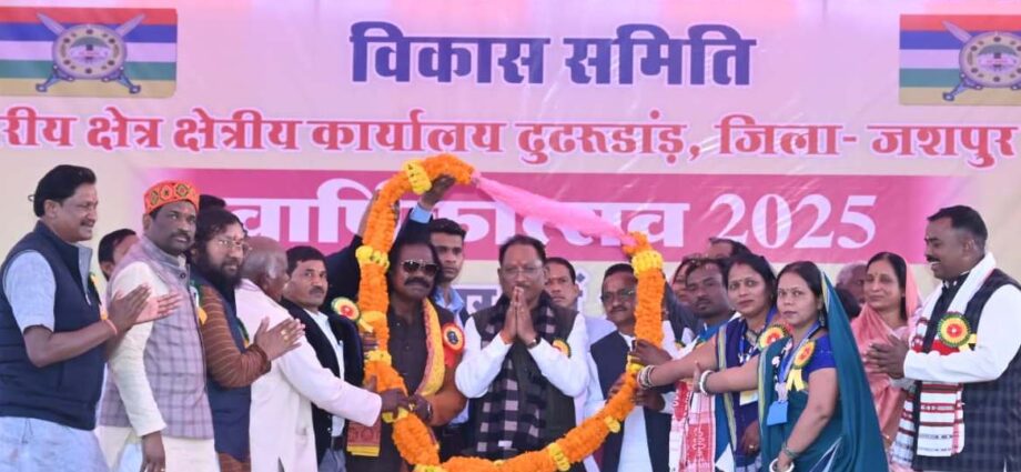 रायपुर: मुख्यमंत्री श्री विष्णुदेव साय विकासखंड कांसाबेल के ग्राम ढूढरूडांड में आयोजित अखिल भारतीय आदिवासी कंवर समाज विकास समिति के वार्षिकोत्सव कार्यक्रम में बतौर मुख्य अतिथि शामिल हुए। इस अवसर पर उन्होंने समाज के उत्थान हेतु समर्पित भाव से कार्य कर रहे पदाधिकारियों एवं कार्यकर्ताओं की प्रशंसा करते हुए उनके योगदान को सराहा। कार्यक्रम में विधायक श्रीमती गोमती साय, पूर्व सांसद श्री नन्द कुमार साय, पूर्व संसदीय सचिव श्री भरत साय, जिला पंचायत सदस्य श्री गेंद बिहारी सिंह, कलेक्टर श्री रोहित व्यास विशेष रूप से उपस्थित रहे।