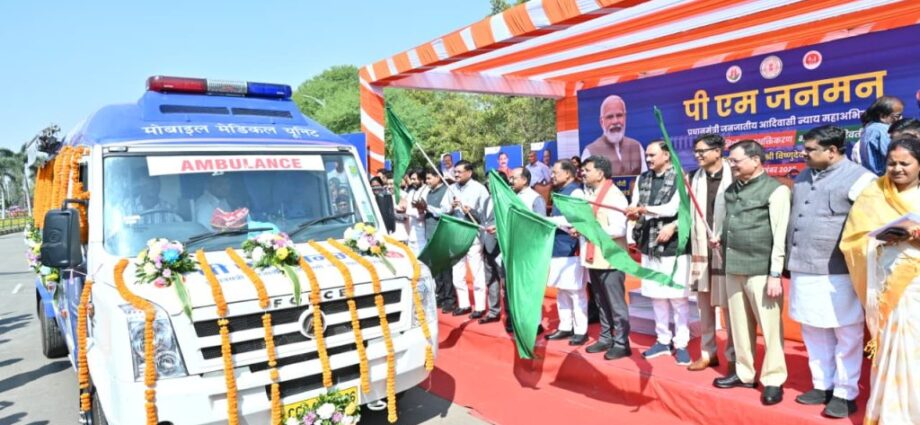 रायपुर 31 दिसंबर 2025/ दूरस्थ और घने वनांचल वाले आदिवासी क्षेत्रों में अब स्वास्थ्य सेवाएँ लोगों के दरवाज़े तक पहुँचेंगी। प्रधानमंत्री जनजातीय आदिवासी न्याय महाअभियान “पीएम जनमन” के तहत बुधवार को नवा रायपुर में मुख्यमंत्री श्री विष्णुदेव साय ने 57 मोबाइल मेडिकल यूनिट वाहनों को हरी झंडी दिखाकर रवाना किया। कार्यक्रम में स्वास्थ्य मंत्री श्री श्याम बिहारी जायसवाल सहित मंत्रिमंडल के सदस्य, जनप्रतिनिधि और विभागीय अधिकारी-कर्मचारी उपस्थित थे।