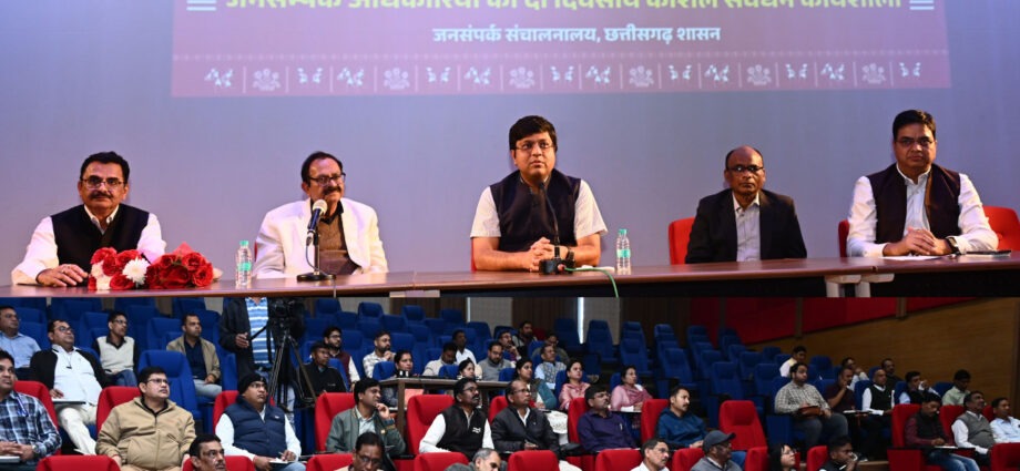 उद्घाटन सत्र में वरिष्ठ अधिकारियों में अपर संचालक श्री जवाहरलाल दरियो, श्री संजीव तिवारी, श्री उमेश मिश्रा, श्री आलोक देव ने जनसेवा में स्पष्ट, सरल और समयबद्ध संवाद की भूमिका पर प्रकाश डालते हुए कहा कि जनसंपर्क के लिए प्रभावी संवाद सबसे बड़ी आवश्यकता है। प्रतिभागियों को दो दिनों तक चलने वाले सत्रों की रूपरेखा और अपेक्षाओं से अवगत कराया गया। अधिकारियों ने कहा कि इस कार्यशाला का उद्देश्य समाचार लेखन, टेलीविजन सहभागिता और सोशल मीडिया के प्रभावी उपयोग के माध्यम से जनसंपर्क को अधिक सशक्त, आधुनिक, संवेदनशील और उन्मुखी बनाना है।