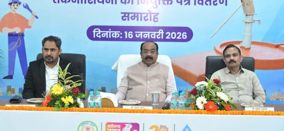 रायपुर: उप मुख्यमंत्री एवं लोक स्वास्थ्य यांत्रिकी मंत्री श्री अरुण साव ने आज व्यावसायिक परीक्षा मंडल (व्यापमं) द्वारा प्रतियोगी परीक्षा के माध्यम से चयनित 44 नए हैंडपंप तकनीशियनों को नियुक्ति पत्र प्रदान किया। श्री साव ने नवनियुक्त तकनीशियनों को बधाई देते हुए उनके उज्ज्वल भविष्य की कामना की। श्री साव ने इस अवसर पर छत्तीसगढ़ में पेयजल समस्याओं के निदान के लिए नया नंबर 1916 जारी किया।