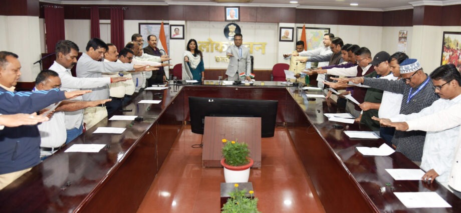 रायपुर: राष्ट्रीय मतदाता दिवस के अवसर पर लोकभवन सचिवालय में राज्यपाल के सचिव डॉ. सी. आर. प्रसन्ना, उप सचिव सुश्री निधि साहू, संवैधानिक प्रकोष्ठ के उप सचिव डॉ. रूपेन्द्र कवि सहित सभी अधिकारियों एवं कर्मचारियों ने मताधिकार की शपथ ली।सभी ने शपथ ली कि ‘‘हम भारत के नागरिक लोकतंत्र में अपनी पूर्ण आस्था रखते हुए यह शपथ लेते हैं कि हम अपने देश की लोकतांत्रिक परम्पराओं की मर्यादा को बनाए रखेंगे तथा स्वतंत्र, निष्पक्ष एवं शांतिपूर्ण निर्वाचन की गरिमा को अक्षुण्ण रखते हुए निर्भीक होकर धर्म, वर्ग, जाति, समुदाय, भाषा अथवा अन्य किसी भी प्रलोभन से प्रभावित हुए बिना सभी निर्वाचनों में अपने मताधिकार का प्रयोग करेंगे।’’