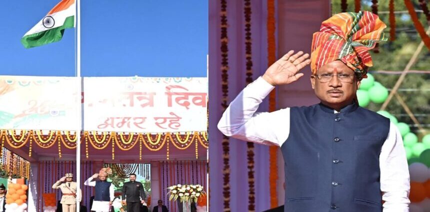 बिलासपुर। छत्तीसगढ़ के मुख्यमंत्री विष्णुदेव साय ने 77वें गणतंत्र दिवस के अवसर पर बिलासपुर के पुलिस परेड मैदान में राष्ट्रीय ध्वज तिरंगा फहराया। राष्ट्रगान के बाद मुख्यमंत्री ने परेड का निरीक्षण किया और प्रदेशवासियों को गणतंत्र दिवस की शुभकामनाएं एवं बधाई दी।