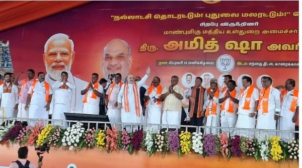 कारैक्कल। केंद्रीय गृह मंत्री अमित शाह ने शनिवार को पुडुचेरी के कारैक्कल में आयोजित भारतीय जनता पार्टी (भाजपा) की जनसभा को संबोधित करते हुए दावा किया कि आगामी 2026 विधानसभा चुनाव में राष्ट्रीय जनतांत्रिक गठबंधन (राजग) 60 प्रतिशत मत हासिल कर पुडुचेरी की सभी 24 सीटें जीतेगा। उन्होंने पुडुचेरी की जनता से राष्ट्रीय जनतांत्रिक गठबंधन (राजग) को निरंतर समर्थन देने की अपील की।