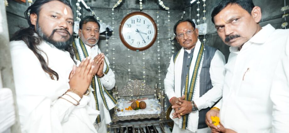 रायपुर, 22 फरवरी 2025/ मुख्यमंत्री श्री विष्णु देव साय रविवार को बाबा गुरु घासीदास जी की जन्मभूमि एवं तपोभूमि गिरौदपुरी धाम में आयोजित संत समागम एवं गुरुदर्शन मेला में शामिल हुए। उन्होंने पूज्य गुरुगद्दी का दर्शन एवं पूजा – अर्चना कर प्रदेशवासियों की खुशहाली और समृद्धि के लिये कामना की।