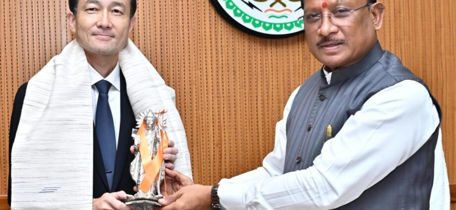 रायपुर--मुख्यमंत्री विष्णु देव साय से आज छत्तीसगढ़ विधानसभा स्थित मुख्यमंत्री कार्यालय कक्ष में जापान दूतावास के राजनीतिक मामलों के मंत्री आबे नोरिआकि ने सौजन्य मुलाकात की। इस अवसर पर दोनों के बीच छत्तीसगढ़ में औद्योगिक निवेश, आर्थिक सहयोग तथा विकास की संभावनाओं को लेकर सार्थक चर्चा हुई। मुख्यमंत्री साय ने आबे नोरिआकि का शॉल ओढ़ाकर तथा भगवान राम की प्रतिमा भेंट कर आत्मीय स्वागत किया। मुख्यमंत्री साय ने इस अवसर पर अपनी जापान यात्रा का जिक्र करते हुए आबे को प्रदेश सरकार की नई औद्योगिक नीति, निवेश को प्रोत्साहित करने वाली नीतियों तथा विभिन्न क्षेत्रों में उपलब्ध अवसरों के बारे में विस्तार से जानकारी दी। उन्होंने बताया कि राज्य में उद्योगों के विकास के लिए बेहतर आधारभूत संरचना, प्रचुर प्राकृतिक संसाधन और निवेश के लिए अनुकूल वातावरण उपलब्ध है, जिससे निवेशकों को आकर्षक अवसर प्राप्त हो रहे हैं। इस अवसर पर विधायक किरण देव एवं विधायक सुशांत शुक्ला उपस्थित थे।