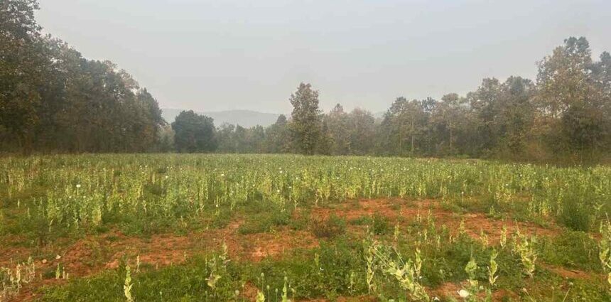 बलरामपुर-रामानुजगंज। जिले के कुसमी थाना क्षेत्र अंतर्गत त्रिपुरी गांव में प्रशासन और पुलिस के लिए बड़ा मामला सामने आया है। गांव की करीब 4 से 5 एकड़ जमीन पर अफीम की अवैध खेती का खुलासा हुआ है, जिससे इलाके में हड़कंप मच गया। जानकारी के अनुसार, झारखंड का एक व्यक्ति स्थानीय दो ग्रामीणों से चार एकड़ जमीन लीज पर लेकर शुरुआत में उन्हें फूलों की खेती का आश्वासन दिया। लेकिन बाद में उसी जमीन पर अफीम की खेती शुरू कर दी गई। जब ग्रामीणों को शक हुआ कि खेत में उगाए गए पौधे सामान्य फसल के नहीं बल्कि अफीम के हैं, तो उन्होंने इसकी जानकारी प्रशासन और पुलिस को दी।