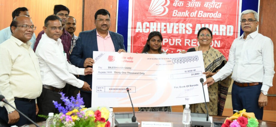 रायपुर: इंदिरा गांधी कृषि विश्वविद्यालय, रायपुर के तीन मेधावी छात्रों को 12 मार्च 2026 को कृषि महाविद्यालय, रायपुर के सेमिनार हॉल में आयोजित एक समारोह में बैंक ऑफ बड़ौदा द्वारा अचीवर्स अवॉर्ड से सम्मानित किया गया। इस अवसर पर अपने-अपने शैक्षणिक वर्षों में कक्षा में सर्वोच्च स्थान प्राप्त करने वाले विद्यार्थियों को सम्मानित किया गया। सम्मानित विद्यार्थियों में कृषि महाविद्यालय एवं अनुसंधान केंद्र, साजा (बेमेतरा) की प्रथम वर्ष की छात्रा दिलेश्वरी साहू, शहीद गुंडाधूर कृषि महाविद्यालय एवं अनुसंधान केंद्र, जगदलपुर के द्वितीय वर्ष के छात्र देविदत्त जेना तथा कृषि महाविद्यालय, रायपुर की तृतीय वर्ष की छात्रा अनुष्का चौरसिया शामिल थीं। कार्यक्रम में प्रत्येक विद्यार्थि को 31,000 रुपये की नकद पुरस्कार राशि प्रदान की गई।
