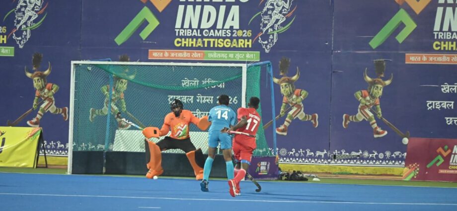 रायपुर- खेलो इंडिया ट्राइबल गेम्स के अंतर्गत राजधानी रायपुर स्थित सरदार वल्लभभाई पटेल इंटरनेशनल हॉकी स्टेडियम में आज तीसरे दिन पुरुष हॉकी प्रतियोगिता के सभी मैच दिलचस्प और रोमांच से भरे मुकाबले रहे।