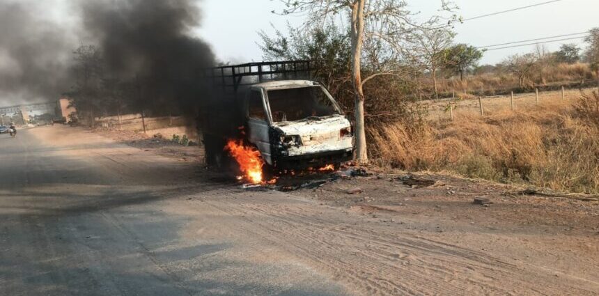 रायपुर / अभनपुर। अभनपुर राजिम मार्ग पर एक पिकअप वाहन में अचानक आग लग गई। यह वाहन राजिम से रायपुर की ओर जा रही थी। चालक ने बताया कि वाहन में लगभग 4 लाख रुपए नगद और दो चेक भी थे, जो आग में जल गए।