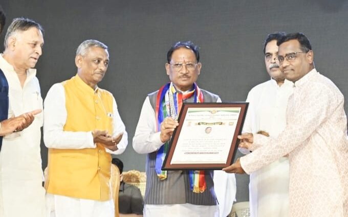 रायपुर। दादाबाड़ी तीर्थ में आयोजित भगवान महावीर जन्मकल्याणक महोत्सव 2026 में महाराष्ट्र मंडल के अध्यक्ष और वरिष्ठ समाजसेवी अजय मधुकर काले को जैन रत्न अलंकरण सम्मान से सम्मानित किया गया। काले को यह सम्मान मुख्यमंत्री विष्णु देव साय के हाथों प्रदान किया गया। इस अवसर पर समाज सेवा, पत्रकारिता, शिक्षा और उच्च शिक्षा सहित विभिन्न क्षेत्रों में विशिष्ट योगदान देने वाली विभूतियों को भी जैन रत्न अलंकरण से सम्मानित किया गया। समारोह में रायपुर पश्चिम विधायक राजेश मूणत व समाजसेवी लोकेश कावडिय़ा भी विशेष रूप से उपस्थित रहे।