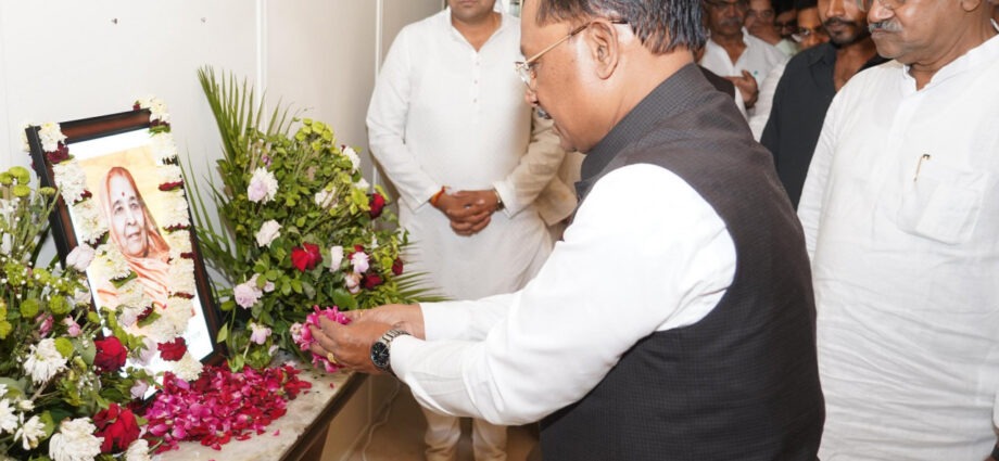 मुख्यमंत्री श्री विष्णुदेव साय ने श्री रामजी वाटिका में आयोजित श्रद्धांजलि सभा में दिवंगत श्रीमती अग्रवाल के छायाचित्र पर पुष्प अर्पित कर नमन किया।