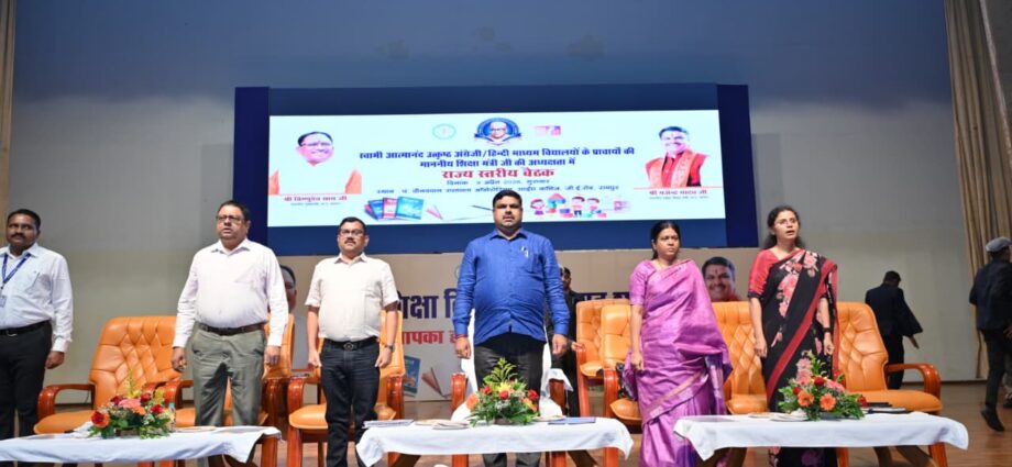 शिक्षा मंत्री ने कक्षा 9 वीं से 12 वीं तक के विद्यार्थियों पर विशेष फोकस रखते हुए प्रतियोगी परीक्षाओं की तैयारी हेतु मार्गदर्शन उपलब्ध कराना सुनिश्चित करें। प्रत्येक माह एक दिन निर्धारित कर “इंग्लिश स्पीकिंग डे” मनाने तथा विद्यालय परिसर में मोबाइल उपयोग पर नियंत्रण रखने के निर्देश दिए। उन्होंने एआई आधारित शिक्षण प्रणाली को बढ़ावा देने एवं गुणवत्तापूर्ण शिक्षा उपलब्ध कराने की प्रतिबद्धता भी व्यक्त की। बैठक में समग्र शिक्षा आयुक्त किरण कौशल, संयुक्त सचिव फरिहा आलम सिद्दकी, एससीईआरटी के संयुक्त संचालक के. कुमार, उपसंचालक ए.एन. बंजारा, डीईओ हिमांशु भारतीय सहित प्रदेशभर से आए प्राचार्यगण उपस्थित रहे।
