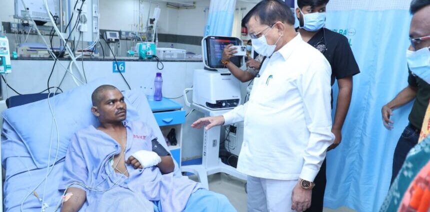 रायपुर :- छत्तीसगढ़ शासन के वाणिज्य उद्योग, श्रम,आबकारी एवं सार्वजनिक उपक्रम विभाग के कैबिनेट मंत्री लखन लाल देवांगन ने आज गुरुवार को रायगढ़ जिले के शासकीय एवं निजी अस्पतालों का दौरा कर सिंघीतराई वेदांता प्लांट हादसे में घायल श्रमिकों का हालचाल जाना तथा उनके शीघ्र स्वास्थ्य लाभ की कामना की। उन्होंने अस्पताल प्रबंधन को निर्देशित किया कि सभी घायलों को सर्वोत्तम एवं समुचित उपचार उपलब्ध कराया जाए। इस दौरान उन्होंने ग्रामीणों से बातचीत कर उनकी स्थिति की जानकारी भी ली। उपचार-रत श्रमिकों ने मिल रहे उपचार के प्रति संतोष व्यक्त किया। मंत्री देवांगन आज रायगढ़ जिले के एक दिवसीय प्रवास पर रहे।