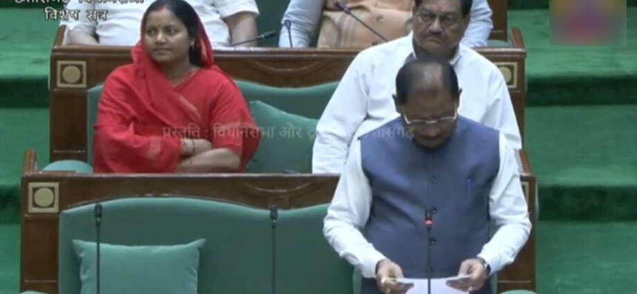 रायपुर। छत्तीसगढ़ विधानसभा के विशेष सत्र में विपक्ष के हंगामे के बीच मुख्यमंत्री विष्णु देव साय ने महिला आरक्षण बिल पर चर्चा के लिए शासकीय संकल्प प्रस्ताव पेश किया. आंसदी ने चर्चा के लिए 4 घण्टे का समय निर्धारित किया।