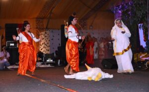 आज केरल से आए कलाकार दल ने पारंपरिक लोक वेशभूषा में प्रस्तुति दी। इस अवसर पर उन्होंने रामकथा से जुड़े प्रसंगों की मनमोहक प्रस्तुति से दर्शकों को मंत्रमुग्ध कर दिया। केरल की रामायण मंडली ने संगीतमय प्रस्तुति देते हुए सूर्पणखा प्रसंग से लेकर रावण वध तक के प्रसंग की भावपूर्ण प्रस्तुति दी। पारंपरिक वेशभूषा के साथ इस प्रस्तुति में केरल में भगवान राम की महिमा की सुंदर अभिव्यक्ति दी गई, कलाकारों ने भक्ति और भाव के मिश्रण का जीवंत प्रदर्शन किया। इस दल के कलाकारों की आंखों को भाने वाली रंग-बिरंगी पोशाक और शास्त्रीय नृत्य कथकली की शैली में दी गई प्रस्तुति ने चार-चांद लगा दिए।