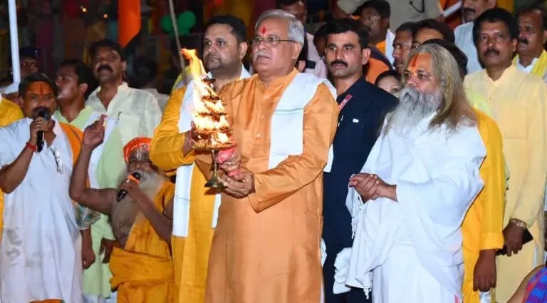 मुख्यमंत्री भूपेश बघेल आज रायगढ़ में केलो मैय्या की महाआरती कर प्रदेश की सुख-समृद्धि की कामना की। उन्होंने गौ माता को चारा खिलाकर गोधन समृद्धि की कामना की। मुख्यमंत्री बघेल ने इस मौके पर गोबर से बने रंग-बिरंगे दिए से दीपदान किया।