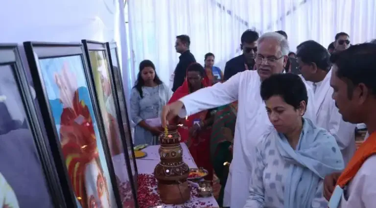 मुख्यमंत्री बघेल कार्यक्रम स्थल में सर्वप्रथम हल्बा समाज की आराध्य देवी माता दंतेश्वरी, छत्तीसगढ़ महतारी, महान क्रांतिकारी एवं आदिवासी जन नायक बिरसा मुंडा और शहीद गैंदसिंह के तैल चित्र पर दीप प्रज्वलन और माल्यर्पण कर कार्यक्रम का विधिवत शुभारंभ किया।