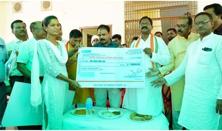 रायपुर । खाद्य और संस्कृति मंत्री श्री अमरजीत भगत ने सीतापुर और बतौली विकासखंड के 100 से अधिक हितग्राहियों को विभिन्न शासकीय योजनाओं के तहत् 14 लाख 55 हजार रूपए की सहायता राशि वितरित की। उन्होंने बंशीपुर – राताखांड होते हुए दमगड़ा मुख्य मार्ग से अंदरूनी गांव के लिए लगभग 8 किमी लंबाई की सड़क एवं पुल-पुलिया की स्वीकृति प्रदान करते हुए अधिकारियों को आवश्यक कार्यवाही करने के निर्देश दिए। मंत्री श्री भगत ने असंगठित कर्मकार दिव्यांग सहायता योजना अंतर्गत जिन हितग्राहियों को चेक वितरित की उनमें शांति दास को एक लाख रुपए, घरेलू महिला कामगार योजना अंतर्गत 16 हितग्राहियों को 3 लाख 20 हज़ार रुपए, स्वेच्छा अनुदान से 52 हितग्राहियो को 4 लाख 90 हज़ार रुपए शामिल हैं। इसी प्रकार श्री भगत ने सीतापुर के हितग्राहियों को श्रम विभाग के अंतर्गत दिव्यांग सहायता योजना की हितग्राही पिंकी को 1 लाख रुपए, घरेलू कामगार योजना और प्रसूति सहायता योजना के अंतर्गत 16 पात्र हितग्राहियों को 3 लाख 20 हज़ार रुपए, इस दौरान श्री भगत ने स्वेच्छानुदान से 20 हितग्राहियों को 1 लाख 25 हज़ार का सहायता राशि जरूरतमंदो को प्रदान की।