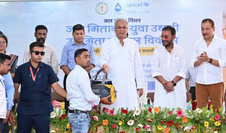 रायपुर । मुख्यमंत्री श्री भूपेश बघेल ने आज यहां अपने निवास कार्यालय में जल-जीवन मिशन और यूनिसेफ के तत्वाधान में आयोजित कार्यक्रम में ‘जल मितान-युवा उद्यमी’ उद्यमिता कौशल विकास कार्यक्रम का शुभारंभ किया लोक स्वास्थ्य यांत्रिकी मंत्री श्री गुरु रूद्रकुमार कार्यक्रम की अध्यक्षता कर रहे हैं मुख्य सचिव श्री अमिताभ जैन, मुख्यमंत्री के सचिव डॉ. एस. भारतीदासन, जल जीवन मिशन छत्तीसगढ़ के मिशन निदेशक श्री आलोक कटियार, यूनिसेफ की वाश विशेषज्ञ सुश्री श्वेता पटनायक भी कार्यक्रम में उपस्थित हैं मुख्यमंत्री श्री भूपेश बघेल और गुरु रुद्रगुरु सहित अतिथियों द्वारा कार्यक्रम में 90 जल मितान एवं युवा उद्यमियों को टूल किट प्रदान किए गए । टूल किट में युवाओं को सुरक्षा जूता, हेलमेट आदि दिए गए। जल जीवन मिशन के अंतर्गत छत्तीसगढ़ के ग्रामीण क्षेत्रों में पाइप लाइन द्वारा हर घर में जल आपूर्ति की विकसित की जा रही अधोसंरचना के स्थायी रखरखाव के लिए राज्य के युवाओं को कौशल विकास प्रशिक्षण देकर ‘जल मितान’ और ‘युवा उद्यमी’ के रूप में तैयार किया गया है । जल जीवन मिशन एवं यूनिसेफ की भागीदारी से पेयजल आपूर्ति की निर्मित अधोसंरचना के स्थाई रखरखाव के लिए राज्य के 540 युवाओं तथा 90 युवा उद्यमियों को 21 दिनों की आवासीय ट्रेनिंग दी गई है। युवाओं को प्लंबिंग, इलेक्ट्रिकल, सोलर पैनल रिपेयरिंग, आर.ओ. रिपेयरिंग आदि की ट्रेनिंग दी गई है। जल मितान विभिन्न सेवाएं -जल गुणवत्ता परीक्षण सर्विसेज, नल/पाइप फिटिंग रिपेयरिंग, आरो फिटिंग/रिपेयरिंग,इलेक्ट्रिकल फिटिंग /रिपेयरिंग , सोलर पैनल फिटिंग/रिपेयरिंग, पम्प आपरेटर सर्विस प्रदान करेंगे । मुख्यमंत्री श्री भूपेश बघेल ने जल मितान-उद्यमिता विकास कार्यक्रम को संबोधित करते हुए कहा कि छत्तीसगढ़ देश का पहला राज्य है, जहां जल जीवन मिशन के तहत पेयजल योजनाओं के संचालन और संधारण के लिए बड़ी संख्या में युवाओं को प्रशिक्षण दिया जा रहा है और जल मितान, युवा उद्यमी तथा जल दीदी के रूप में उन्हें योजनाओं के संधारण और संचालन के लिए तैयार किया जा रहा है। मुख्यमंत्री ने कहा कि राज्य सरकार द्वारा युवाओं को स्वरोजगार और रोजगार से जोड़ने के लिए निरंतर प्रयास किए जा रहे हैं। युवाओं को बेरोजगारी भत्ता के साथ कौशल विकास का प्रशिक्षण भी दिया जा रहा है। मुख्यमंत्री ने कहा कि जल जीवन मिशन के तहत 540 युवाओं को उच्च स्तर का प्रशिक्षण दिया गया है और उन्हें आज नि : शुल्क टूल किट प्रदान किया गया। इन प्रशिक्षित जल मितान और जल दीदियों को स्वरोजगार के नए अवसर मिले हैं। मुख्यमंत्री ने प्रशिक्षण प्राप्त सभी युवाओं को बधाई और शुभकामनाएं दीं। मुख्यमंत्री ने कहा कि जल जीवन मिशन के तहत छत्तीसगढ़ के ग्रामीण क