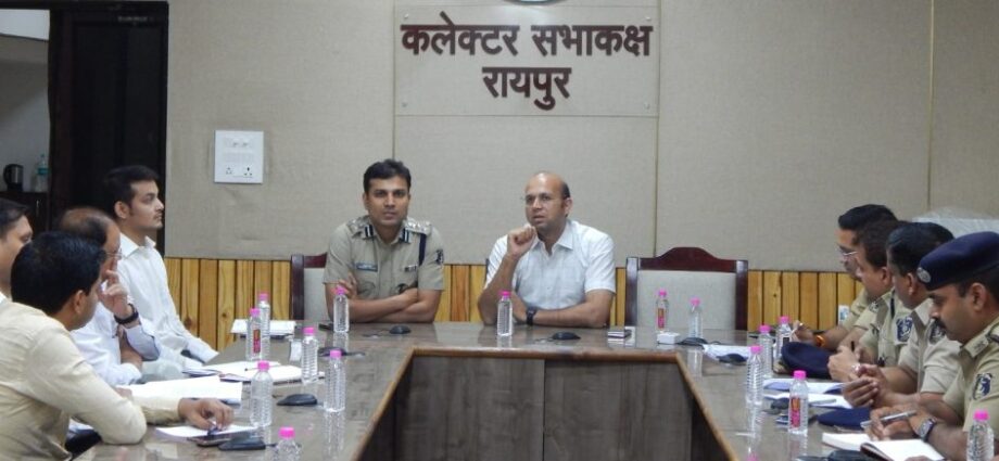 रायपुर 17 जून 2023/ कलेक्टर डॉ सर्वेश्वर नरेंन्द्र भुरे ने आज कलेक्ट्रेट सभाकक्ष में शहर की कानून व्यवस्था से जुडे विषयों पर बैठक ली। इस अवसर पर वरिष्ठ पुलिस अधीक्षक श्री प्रशांत अग्रवाल उपस्थित थे। डॉ भुरे ने आगामी दिनों शहर में होने वाले धरना प्रदर्शन के संबंध में जानकारी ली। उन्होंने कहा कि शहर के प्रमुख स्थानों में धरना प्रदर्शन के दौरान सुरक्षाबलों की पर्याप्त संख्या में तैनाती की जाए। जिन रास्तों-चौक चौराहों में प्रदर्शन होना हैं और जूलुस गुजरना है, वहां पर आवश्यकतानुसार मजबूत बैरिकेडिंग की व्यवस्था करें। साथ ही प्रदर्शन के रूट की जानकारी पहले से लेकर शहर की यातायात व्यवस्था के संबंध में योजना बना ले ताकि आमनागरिकों को परेशानियों का सामना कम से कम करना पड़े। बैठक में कलेक्टर ने कहा कि इस दौरान राजस्व और पुलिस अधिकारी समन्वय बनाकर कार्य करें। अधिकारीगण प्रमुख स्थानों पर संयम से कार्य करते हुए सुरक्षाबलों को परिस्थिति अनुसार ही आवश्यक कार्रवाई का निर्देश दें। उन्होंने टाटीबंध में बन रहे निर्माधीन फ्लाईओवर की भी जानकारी ली और प्रमुख स्थानों पर शाईनबोर्ड लगाने के निर्देश दिए। इस अवसर पर एडीएम, एसडीएम और पुलिस प्रशासन के अन्य अधिकारी उपस्थित थे।