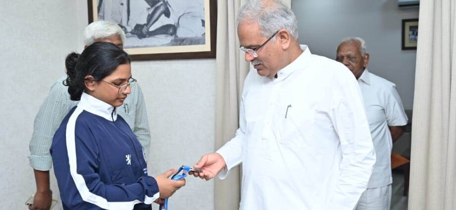 रायपुर, 30 जून 2023/मुख्यमंत्री भूपेश बघेल से आज यहां उनके निवास कार्यालय में छत्तीसगढ़ की उभरती युवा तैराक अल्योशा कुंजाम ने सौजन्य मुलाकात की। अल्योशा ने ओडिशा की राजधानी भुवनेश्वर में प्रथम बार आयोजित राष्ट्रीय जनजातीय खेल महोत्सव में तैराकी की दो स्पर्धाओं में दो पदक जीते हैं। मुख्यमंत्री से मुलाकात के दौरान अल्योशा ने उन्हें अपनी इस उपलब्धि की जानकारी देते हुए बताया कि उन्होंने जनजातीय खेल महोत्सव में 50 मीटर फ्री स्टाईल में सिल्वर मेडल और 100 मीटर फ्री स्टाईल में ब्रान्ज मेडल जीते हैं। मुख्यमंत्री ने अल्योशा को उनकी उपलब्धियों के लिए बधाई और शुभकामनाएं देते हुए उज्जवल भविष्य के लिए आशीर्वाद दिया। मुख्यमंत्री ने कहा कि अल्योशा ने अपनी उपलब्धियों से छत्तीसगढ़ को गौरवान्वित किया है। अल्योशा कुंजाम राजधानी रायपुर के राजकुमार कॉलेज में कक्षा 12वीं की छात्रा हैं। राष्ट्रीय जनजातीय खेल महोत्सव का आयोजन भुवनेश्वर में 9 से 12 जून 2023 तक किया गया।