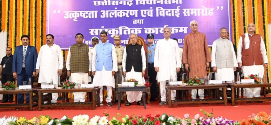 राज्यपाल श्री विश्वभूषण हरिचंदन ने समारोह में वर्ष 2022 के लिए उत्कृष्ट विधायक के रूप में चयनित – श्रीमती संगीत सिन्हा और श्रीमती रंजना डिपेन्द्र साहू, जागरूक विधायक के रूप में चयनित श्री धर्मजीत सिंह तथा उत्कृष्ट संसदीय पत्रकार के रूप में चयनित – पत्रिका से श्री राहुल जैन और इलेक्ट्रॉनिक मीडिया से श्री देवव्रत भगत एवं कैमरामेन श्री रोहित श्रीवास्तव को शाल, श्रीफल, स्मृति चिन्ह और प्रशस्ति पत्र प्रदान कर सम्मानित किया।