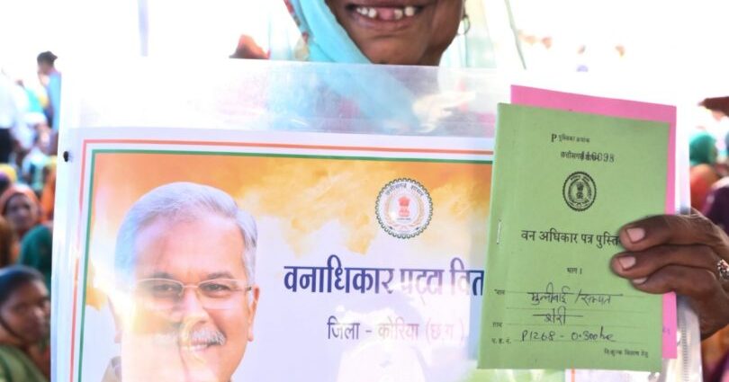 राज्य में लगभग पौने पांच वर्ष में 59 हजार 791 व्यक्तिगत वन अधिकार पत्र वितरित किए गए हैं, जिसका कुल रकबा 33,238.504 हेक्टेयर है। इसी प्रकार 25 हजार 109 सामुदायिक वन अधिकार पत्र वितरित किए गए है, जिसका कुल रकबा 11,81,587.935 हेक्टेयर है। देश में सर्वप्रथम नगरीय क्षेत्र में व्यक्तिगत वन अधिकार सामुदायिक वन अधिकार पत्र एवं सामुदायिक वन संसाधन अधिकार पत्र प्रदाय करने की कार्यवाही छत्तीसगढ़ राज्य में की गई। इसके साथ ही विभिन्न जिलों में अब तक 3,964 सामुदायिक वन संसाधन अधिकार मान्य किए गए हैं, इनका कुल रकबा 17,292,37.103 हेक्टेयर है। राज्य में अब तक विशेष रूप से कमजोर जनजाति समूह को 23 हजार 571 लोगों को व्यक्तिगत वन अधिकार पत्र, जिनका 19,124.408 हेक्टेयर वन भूमि, इसी प्रकार 2360 सामुदायिक वन अधिकार पत्र पर कुल रकबा 1,22,679.174 हेक्टेयर और 184 सामुदायिक वन संसाधन अधिकार पत्र दिया गया है जिसका कुल रकबा 1,44,525.947 हेक्टेयर प्रदान किया गया।