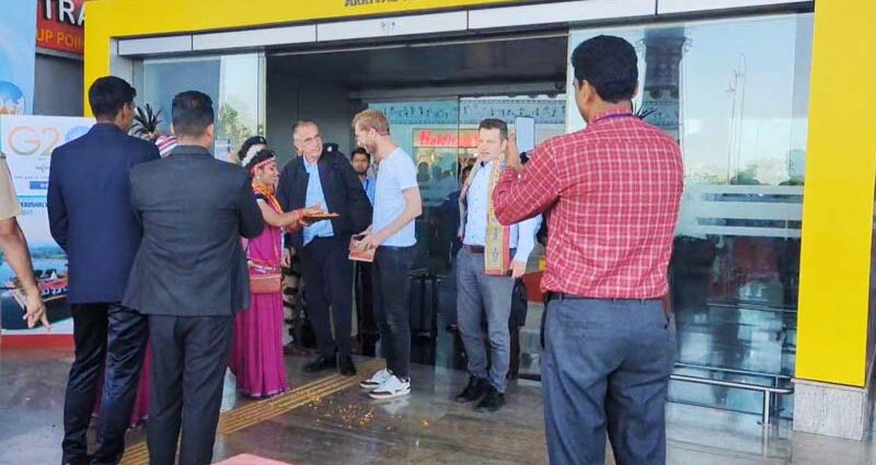 रायपुर। G20 की बैठक में शामिल होने डेलीगेट्स पहुंचे। रेड कार्पेट बिछाकर डेलीगेट्स का स्वागत किया जा रहा है। स्वागत में डेलीगेट्स को छत्तीसगढ़िया गमछा के साथ राऊत नाचा से डेलीगेट्स का स्वागत हो रहा है। छत्तीसगढ़ में अलग अलग कंट्री से डेलीगेट्स आ रहे हैं। आज दिनभर डेलीगेट्स का आना जाना लगा रहेगा। नीदरलैंड, स्वीजरलैंड, यूनाइटेड स्टेट, जर्मनी समेत 16 कंट्री के डेलीगेट्स छत्तीसगढ़ आयेंगे।