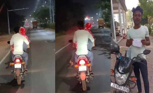 रायपुर। वैसे तो सोशल मीडिया में आए दिन तरह-तरह के वीडियो वायरल होते रहते हैं।र राजधानी के युवाओं की कुछ अलग ही कहानी है।राजधानी का एक वीडियो इन दिनों सोशल मीडिया पर तेजी से वॉयरल हो रहा है।उसमें एक युवक अपनी माशूका को बाइक पर बैठाकर ले जा रहा था। देखकर लग रहा था कि गोया वो कोई माशूका नहीं मशरूका ले जा रहा हो!सोशल मीडिया पर ये वीडियो वॉयरल हुआ, तब ट्रैफिक पुलिस एक्शन में आई। तत्काल उस पर की गई 4 हजार रूपए की चालानी कार्रवाई।