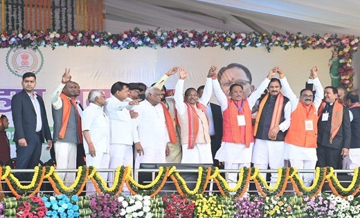 रायपुर। मुख्यमंत्री विष्णु देव साय राजधानी रायपुर के साइंस कॉलेज मैदान पहुंचे है। वही छत्तीसगढ़ के नए मुख्यमंत्री विष्णु देव साय को मुख्यमंत्री के रूप में शपथ लेते हुए देखने उनके पुश्तैनी घर में ग्रामवासियों की भीड़ उमड़ पड़ी है। जशपुर जिले के अंतर्गत कुनकुरी विधानसभा अंतर्गत ग्राम बगिया के लोगों को शपथ ग्रहण समारोह को लाइव दिखाने की व्यवस्था उनके पुश्तैनी घर के बाहर ही की गई है। बड़ा सा एलईडी स्क्रीन लगाकर रखा गया है। जहाँ बड़ी संख्या में गाँव के बच्चे, महिलाएं और बुजुर्ग सहित अन्य लोग पहुँचे हुए हैं। आसपास के लोगों के आने का सिलसिला भी यहाँ जारी है।