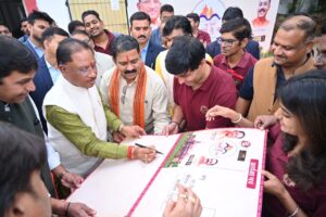 रायपुर –मुख्यमंत्री श्री विष्णु देव साय ने आज राज्य अतिथि गृह पहुना से राम रथ को झंडी दिखाकर रवाना किया। इस अवसर पर उप मुख्यमंत्री श्री विजय शर्मा भी उपस्थित थे। मुख्यमंत्री श्री साय एवं उप मुख्यमंत्री श्री शर्मा ने चिट्ठी में मनोकामना के रूप में ‘जय श्री राम’ लिखकर रथ के जरिये अयोध्या श्री राम लला के पास भेजा और प्रदेशवासियों के खुशहाल एवं सुखमय जीवन की कामना की। मुख्यमंत्री के साथ रायपुर कान्वेंट स्कूल की छात्राओं ने भी अपने संदेश ड्राप बॉक्स में डाले। कार्यक्रम स्थल में छत्तीसगढ़ी फिल्मों के डायरेक्टर श्री मनोज राजपूत, डॉ. ओम माखीजा और श्री प्रेम देवांगन भी उपस्थित थे।