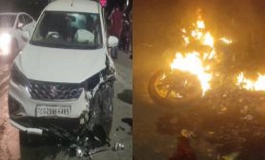 सूरजपुर। सूरजपुर में एक तेज रफ्तार कार और बाइक की आमने सामने की भिड़ंत हो गयी. टक्कर इतनी जोरदार थी कि बाइक में तुरंत आग लग गयी. इस घटना में बाइक सवार दोनों की मौके पर ही मौत हो गयी है। घटना सूरजपुर जिले के कोतवाली थाना क्षेत्र की है।