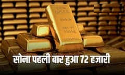 वैश्विक बाजारों से मजबूती के रुख के बीच बुधवार को राष्ट्रीय राजधानी के सर्राफा बाजार में सोने और चांदी की कीमतें एक और नए रिकार्ड स्तर पर पहुंच गईं। सोना पहली बार 72,000 रुपये प्रति 10 ग्राम के स्तर पर पहुंच गया। एचडीएफसी सिक्योरिटीज ने यह जानकारी दी।