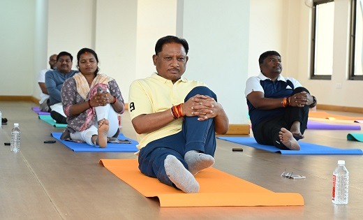 रायपुर। मुख्यमंत्री विष्णु देव साय ने राजधानी रायपुर स्थित भारतीय प्रबंध संस्थान (आईआईएम ) में आयोजित दो दिवसीय चिंतन शिविर के दूसरे दिन आज अपने मंत्रिमंडल के सहयोगियों के साथ योगाभ्यास किया। सीएम विष्णुदेव साय समेत पूरा मंत्रिमंडल ट्राउजर और टी शर्ट में योगाभ्यास किया। वहीं महिला सदस्य सलवार कुर्ते मे योगा किए।