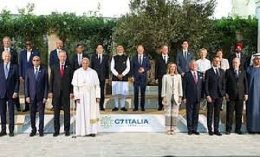 दरअसल, प्रधानमंत्री नरेंद्र मोदी जी7 शिखर सम्मेलन में पहुंचे। इटली की प्रधानमंत्री जॉर्जिया मेलोनी ने उनका गर्मजोशी से स्वागत किया। भारत ने जी7 शिखर सम्मेलन में ‘आउटरीच राष्ट्र’ के रूप में भाग लिया। दुनिया भर के नेताओं ने शुक्रवार रात जी-7 शिखर सम्मेलन के ‘आउटरीच राष्ट्र’ सत्र में एक फैमिली तस्वीर खिंचवाई। प्रधानमंत्री नरेंद्र मोदी ने सोशल मीडिया मंच एक्स पर यह तस्वीर साझा की। उन्होंने लिखा ‘इटली में जी7 शिखर सम्मेलन में विश्व नेताओं के साथ।