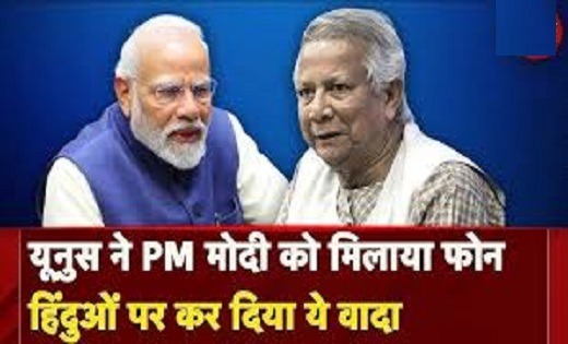 प्रधानमंत्री मोदी ने कहा कि मोहम्मद यूनुस के साथ बातचीत के दौरान बांग्लादेश को लोकतांत्रिक, स्थिर और शांतिपूर्ण देश बनाने के लिए भारत के समर्थन को दोहराया। इससे पहले विदेश मंत्रालय के प्रवक्ता रणधीर जायसवाल ने कहा कि ढाका में भारत के उच्चायुक्त ने बांग्लादेश के अंतरिम प्रशासन के अधिकारियों के साथ बात कर भारत की चिंताओं से अवगत कराया है। हम हालात पर नज़र रखे हुए हैं। जब तक हालात सामान्य नहीं होते, हमारी यह चिंताएं बनी रहेंगी।