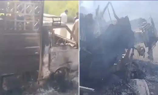 दस वाहनों में भी आग लगा