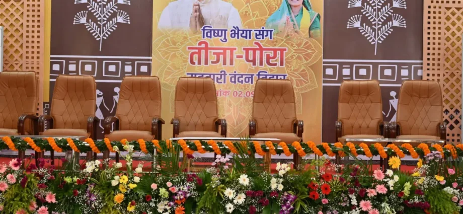 हरेली की तरह मुख्यमंत्री विष्णु देव साय के रायपुर स्थित निवास में तीजा-पोरा का तिहार 2 सितम्बर को सुबह 11 बजे से उत्साह के साथ मनाया जाएगा। इसके लिए मुख्यमंत्री निवास परिसर में छत्तीसगढ़ की परम्परा और रीति-रिवाज के अनुसार साज-सज्जा की गई हैं। इस मौके पर नांदिया-बैला की पूजा की जाएगी। तीजा महोत्सव का आयोजन होगा। तीजा-पोरा त्यौहार के लिए कार्यक्रम में बहनों को आमंत्रित किया गया है। इस तरह महिलाओं के लिए मुख्यमंत्री निवास एक दिन के लिए मायका बन जाएगा। कार्यक्रम में विशेष रूप से महतारी वंदन योजना से लाभान्वित महिलाएं, महिला स्वसहायता समूहों की महिलाए और मितानिनों सहित लगभग 3 हज़ार महिलाओं को आमंत्रित किया गया है। इस अवसर पर महिलाओं के कल्याण के लिए किए जा रहे कार्यक्रम, योजनाओं से अवगत कराने हेतु प्रदर्शनी एवं स्टॉल भी लगाया गया है।