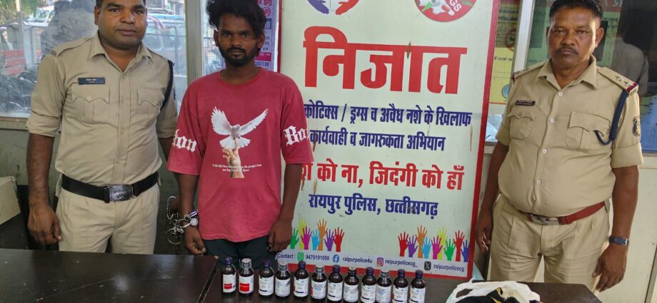 रायपुर। कार शोरूम के पास नशीली सीरप बेचते युवक गिरफ्तार हुआ है। मुखबीर से सूचना प्राप्त हुआ कि एक लड़का उम्र लगभग 20 से 25 वर्ष का सफेद रंग की दुपहिया वाहन एक्टिवा क्रमांक सी जी 04 m z 7135 के डिग्गी में प्रतिबंधित सिरप रखकर वर्धमान कार शोरूम के पास रोड किनारे सिरप बिक्री कर रहा है। जिस सुचना पर तत्काल वरिष्ठ कार्यालय को सुचना देकर गवाहो एवं सम्पूर्ण विवेचना कीट के रेड कार्यवाही हेतू वर्धमान कार शोरूम के पास पहूंचा जहां मुखबिर द्वारा बताये गये हुलिया का लड़का खड़ा मिला पुछताछ करने पर अपना नाम शरद नायक पिता स्वर्गीय श्याम नायक उम्र 23 वर्ष निवासी ब्लॉक नंबर 8 मकान नंबर 23 बीएसयूपी कॉलोनी भाटागांव जिला रायपुर का रहने वाला होना बताया तथा तलाशी दौरान आरोपी के कब्जे से 01.सात नग प्लास्टिक की सीसी जिसमें अंग्रेजी में safunex triprolidine hydrochloride & codeine phosphate syrup 100 एम एल कीमती 165 रुपए का कुल कीमती 1155 रुपए 02. पांच नग प्लास्टिक की सीसी जिसमें अंग्रेजी में planokuf codeine phosphate and triprolidine hydrochloride syrup 100 एम एल, सिरप बिक्री रकम ₹300 व एक मोटरसाइकिल एक्टिवा क्रमांक सीजी 04 mz 7135 कीमती ₹30000 जप्त किया गया। आरोपी को विधिवत दिनांक 17.10.2024 गिरप्तार कर न्यायिक अभिरक्षा में भेजा गया।