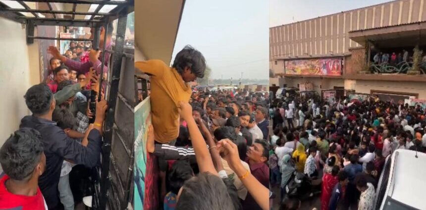रायपुर : फिल्म पुष्पा-2 लगातार चर्चाओं में हैं। वह रिकॉर्ड तोड़ कमाई कर रही है तो वहीं दर्शकों में भी इसका क्रेज लगातार बना हुआ है। सिनेमा घरों के बाहर भारी भीड़ है और हर कोई इस फिल्म को देखने की कोशिश में लगा हुआ है। फिल्म के टिकटों को लेकर सिनेमा घरों में मारामारी भी हो रही है। वहीं राजधानी रायपुर में भी ऐसा ही हाल देखने को मिल रहा है, यहां रविवार को श्याम टॉकीज में लोगों की भारी भीड़ फिल्म पुष्पा 2 को देखने पहुंची, इस दौरान टॉकीज में घुसने को लेकर भीड़ बेकाबू होती नजर आई और एक दूसरे के ऊपर चढ़कर अंदर घुसने की कोशिश की गई, वहीं सुरक्षा व्यवस्था के भी इंतेजाम नहीं किए गए थे,