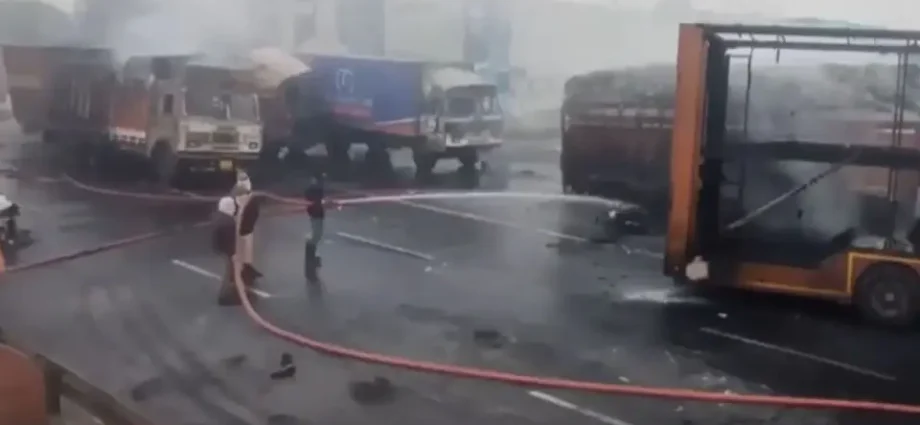 Jaipur Accident: राजस्थान के जयपुर में पेट्रोल पंप के पास एक बड़ा हादसा हुआ है. यहां LPG और CNG ट्रक में जोरदार टक्कर हो गई, जिसके बाद कई गाड़ियों में आग लग गई. इस हादसे में 5 लोगों की जलकर मौत हो गई. पुलिस और प्रशासन की टीम आग बुझाने की कोशिश कर रही है. इस काम में 20 से ज्यादा दमकल कर्मचारी जुटे हुए हैं.